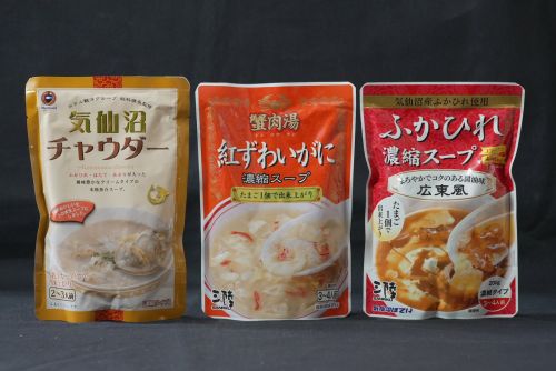 三陸常磐の絶品スープ3種と保存食にも最適な釜めし2種をどうぞ。